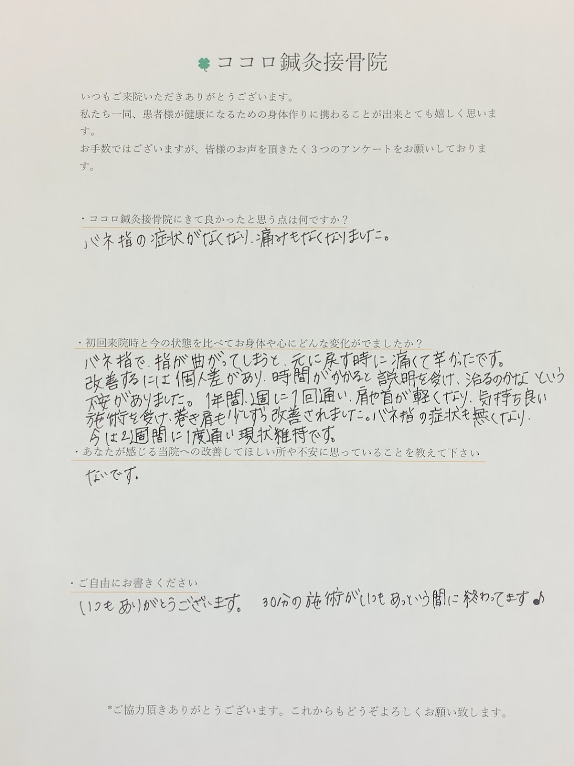 今回は、以前からお身体を診させていただいている、バネ指でお困りだった方の改善例をご紹介したいと思います。